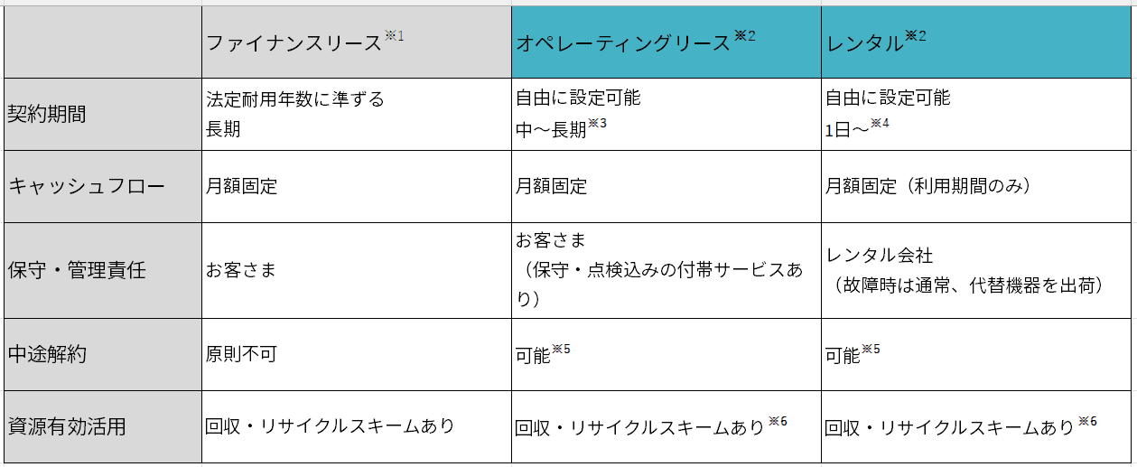 ※3:②オペレーティングリース:上記対象機種以外については、オリックス・レンテック社によるLレンタル(オペレーティングリース)での対応となります。