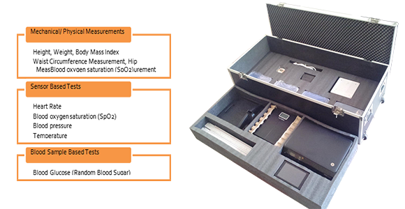 Figure 3: Parameters measured by the Cardiac Risk Assessment Kiosk. All the instruments required for measurement fit into one portable case.