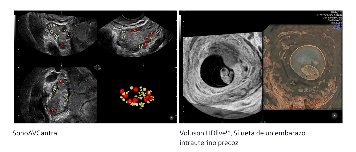 R: Los sistemas de Voluson proporcionan la información crítica que los especialistas en reproducción necesitan para la evaluación, FIV y el embarazo temprano. Por ejemplo, durante la fase de ‘evaluación’, la avanzada tecnología de Voluson permite la visualización del plano coronal, ayudando a localizar la posible patología y evaluar la forma del útero. Utilizando SonoAVC™ antral, el doctor puede evaluar el recuento de folículos antrales de manera eficiente para estimar la reserva de ovárica. Durante la etapa de FIV, SonoAVC™ folicular mejora la eficiencia y la Reproducibilidad del volumen folicular para controlar eficientemente la estimulación y determinar el momento óptimo para la recuperación de ovocitos. Y las imágenes en 2D de alta calidad de Voluson son críticas para realizar la recuperación de óvulos y la transferencia de embriones. Una vez que el embrión ha sido transferido, la imagen de Voluson es utilizada para evaluar si un embarazo viable se puede ver.