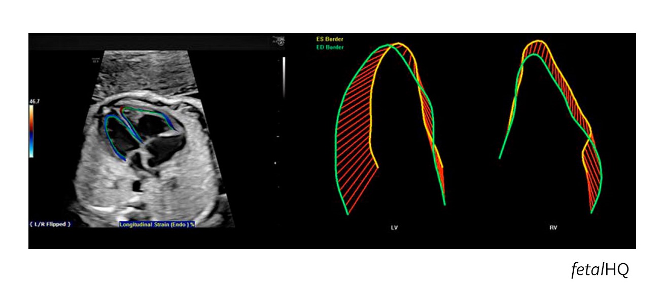 Mientras que esta velocidad es impresionante, no es lo más notable del fetalHQ,, la última tecnología de ultrasonido de GE Healthcare. Esta función en los sistemas de Voluson™ E10 miden el corazón en formas que nunca se han hecho. Los médicos ahora pueden determinar el tamaño, la forma y la contractilidad del corazón a partir de las vistas de 4 cámaras basadas en imágenes 2D y Speckle Tracking.